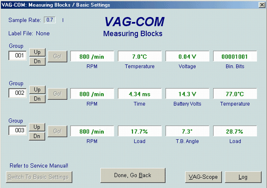 Po uruchomieniu programu wybieramy moduł (Rys. 2) z którym chcemy się połączyć (może to być sterownik silnika, abs`u, air-bag`u, immobilisera lub każdy inny spośród kilkudziesięciu dostępnych). ![]() Rys. 2 - Program Vag-com - wybór sterownika. (kliknij aby powiększyć rysunek) Gdy dokonamy wyboru odpowiedniego modułu czekamy na zgłoszenie się sterownika (Rys. 3). ![]() Rys. 3 - Program Vag-com - połączenie ze sterownikiem. (kliknij aby powiększyć rysunek) Po połączeniu ze sterownikiem można wybrać interesujące nas funkcje podstawowe (np. odczyt kodów usterek, bloki pomiarowe, pojedynczy odczyt), lub funkcje zaawansowane (np. kodowanie, nastawy podstawowe, przeprowadzanie adaptacji elementów wykonawczych, test elementów wykonawczych). Na poniższym rysunku (Rys. 4) przedstawiono działanie funkcji "Bloki pomiarowe". Diagnozowane auto to Skoda Octavia 1.6 `99r. Rysunek przedstawia pracę silnika na biegu jałowym oraz reakcję na naciśnięcie pedału gazu. ![]() Rys. 4 - Program Vag-com - funkcja "Bloki pomiarowe". (kliknij aby powiększyć rysunek) W ten prosty sposób można sprawdzić każdy samochód koncernu VAG. Wystarczy wsiąść do auta, włączyć program i zrobić próbną jazdę obserwując aktualne parametry pracy. ... jako jedyni na rynku oferujemy bezpłatną, fachową pomoc techniczną. Masz problem z instalacją sterownika, obsługą programu, lokalizacją złącza diagnostycznego? - wystarczy, że napiszesz do nas na adres mailowy pomoc@diagnostik.pl - nasz konsultant odpowie na każde zadane pytanie. Tego produktu nie trzeba reklamować. Nadal się wahasz? Koszt podłączenia auta pod komputer u specjalisty to około 100zł (lub nawet 200zł, w autoryzowanym serwisie). Wystarczy, że zdiagnozujesz auto sobie i sąsiadowi, a interfejs już się zwróci. ...i nie zapominaj - jest Twój na zawsze! UWAGA - SAMODZIELNE PRZEPROWADZENIE DIAGNOSTYKI W SAMOCHODZIE DLA NIEDOŚWIADCZONEGO UŻYTKOWNIKA NIE PRZEKROCZY 5-10 MINUT PAMIĘTAJ !!! - jeżeli sam zdiagnozujesz usterkę w swoim samochodzie będziesz mógł ją szybko samemu usunąć (często bywa, że zamiast wymieniać rzekomo uszkodzoną część, wystarczy sprawdzić przewody, które z biegiem czasu mogą się przecierać powodując utratę sygnału lub zaśniedzieć na stykach - wówczas wystarczy je tylko przeczyścić) lub zlecić mechanikowi konkretną naprawę, oszczędzając przy tym sporo czasu i pieniędzy na ustalenie przyczyny usterki. GWARANCJA JAKOŚCI